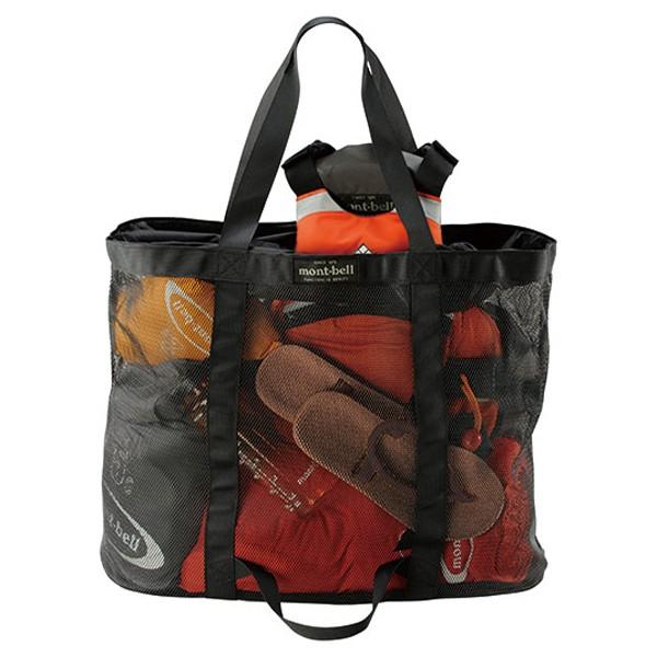 寝袋は車への荷物を積み込むときの隙間に押し込んだりしているので、車から荷物を出して運ぶときとかには、あらためてこのメッシュトートに入れて運んだりしています。